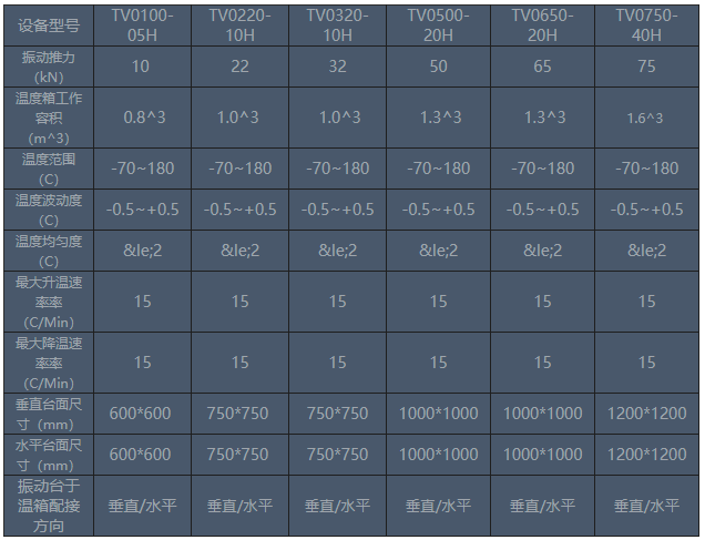 推力:10-75kN,容積:0.5-4立方1、汽車零部件雙向溫度(濕度)振動綜合試驗(yàn)系統(tǒng)
